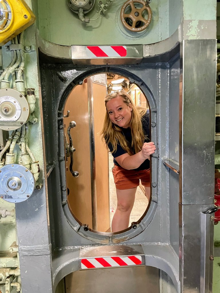 As previously mentioned, phase 2 of the Maine journey involved a 5 hour drive from Boston to Gouldsboro, ME but I wasn’t about to do that trip all in one shot. After securing our car rental (Barbie Jeep) we were well on our way North. I did a little reckon the night before and scouted a small airfield café in New Hampshire where we stopped for a late breakfast. The café was quaint and offered great views of the private aircraft coming and going while we dined on burgers. The next surprise stop was the USS Albacore just near the NH/ME boarder. I had no idea what to expect. I just knew that it was a submarine and walking through them is cool. Laura humored me and we got some great shots of us working the wheel and periscope.