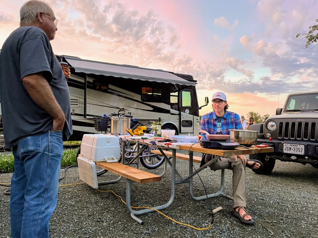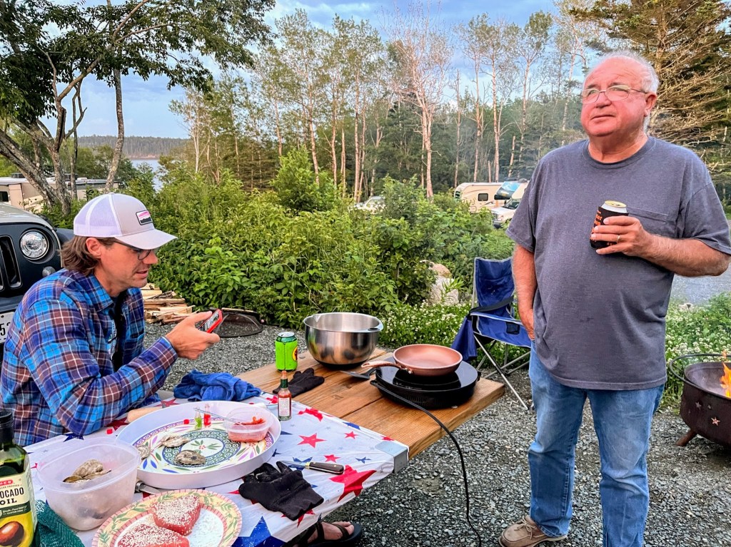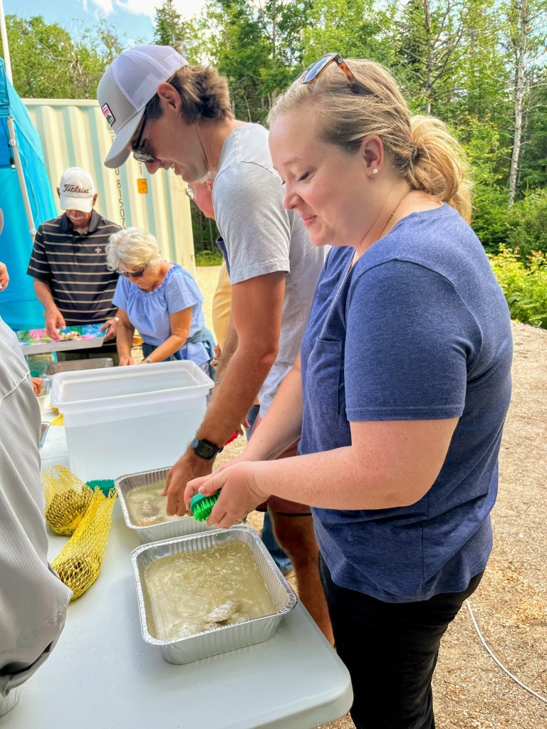 Gouldsboro was the community we spent much of our time while in Maine and served as home base for the folks’ bus. The RV resort they were staying at was managed by a lovely couple that went to great lengths to provide fun summer activities for their guests. One such activity we participated in on Friday evening was an oyster class. It was hosted by a PhD aqua culturist from a nearby oyster farm named “Oyster” Annie. She gave us tons of info on how oysters are sustainably farmed and harvested in Maine. In addition to the info, we got hands on experience scrubbing and shucking oysters from 2 different farms for on-site consumption. Oysters, more than lobsters, were one of my favorite things about Maine.