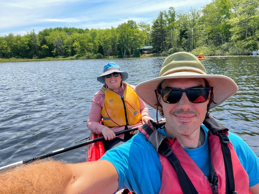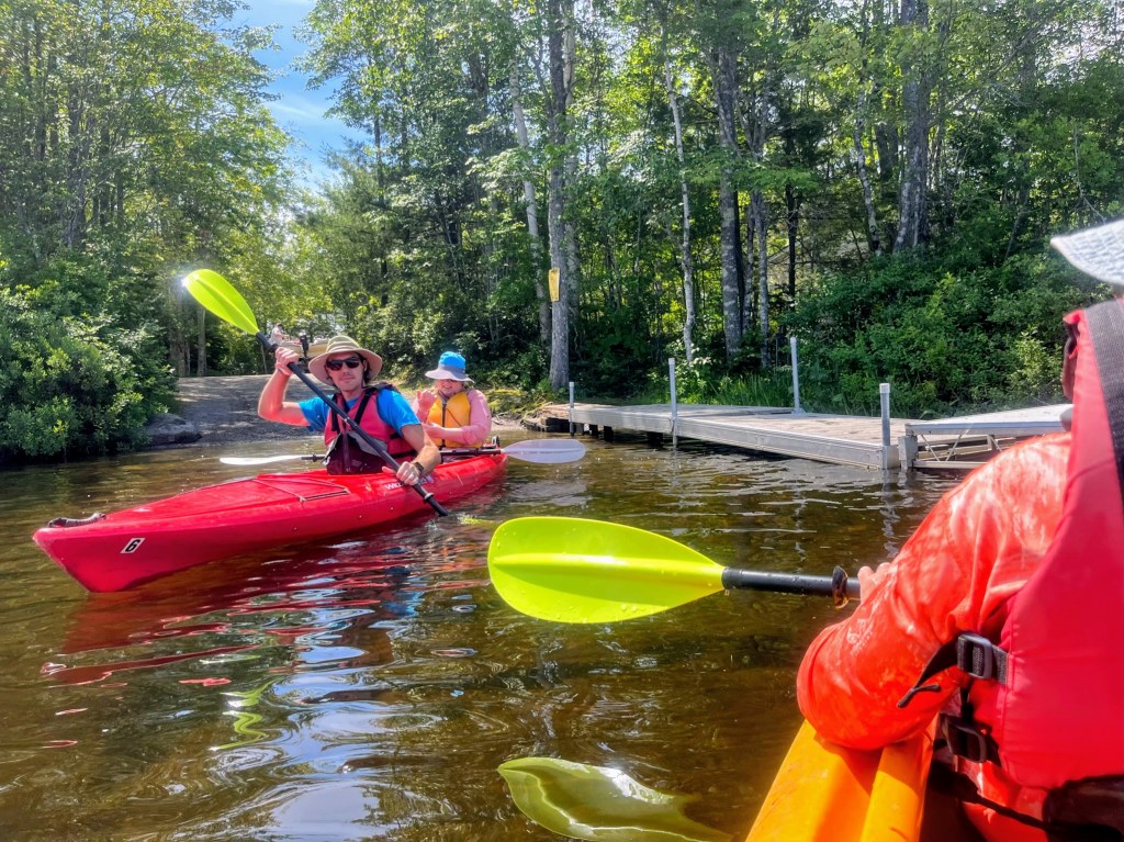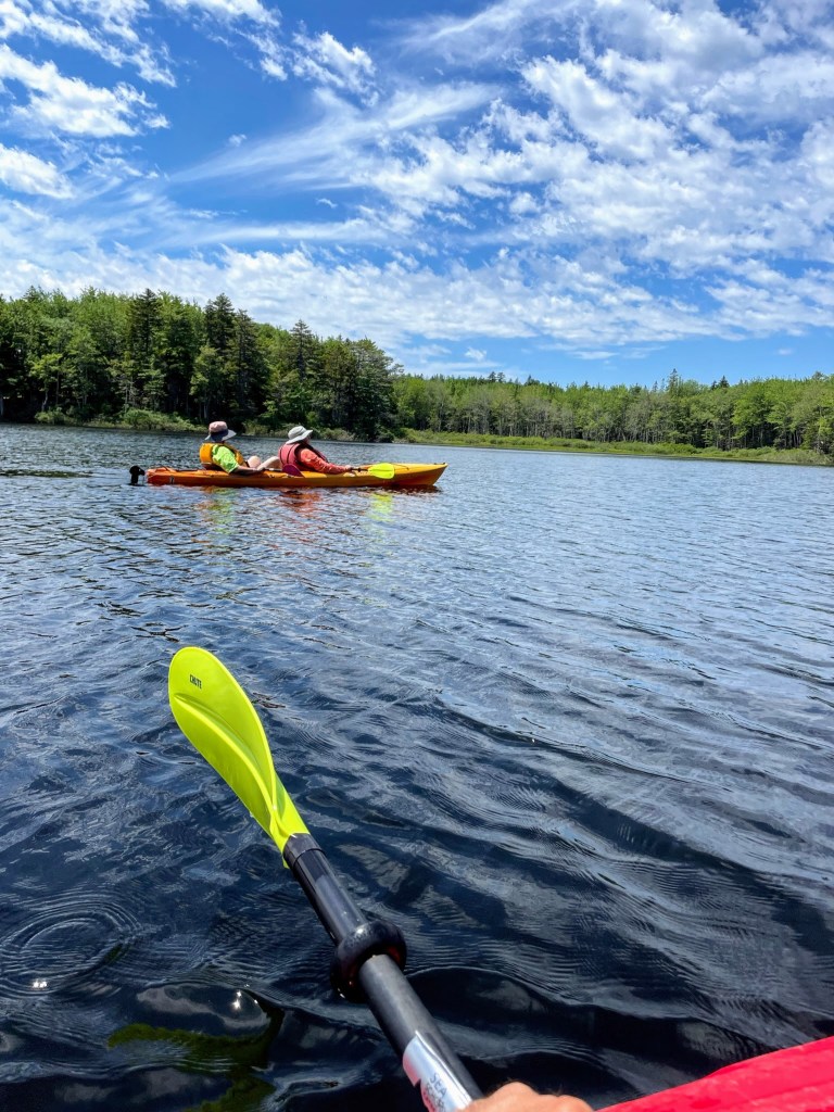 The rain passed by Sunday leaving us with a gorgeous day for activities. I got started early with another bike ride around the Schoodic Peninsula. I varied the ride a bit with a quick hike to the top of Schoodic Head and an exploration of the gravel roads that cut through the peninsula. At around 11, I met back up with the rest of the party to pick up our kayak rental gear. After we were setup with lifejackets and paddles, we headed over to Jones Pond. To call it a pond seems like a disservice as it was easily the size of a lake. The conditions on the pond were ideal. There wasn’t a breath of wind and we caught a couple seaplanes take off. After a couple hours of paddling, we had picnic lunch on the bank of the pond and cooled off with a quick dip.