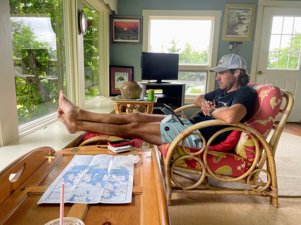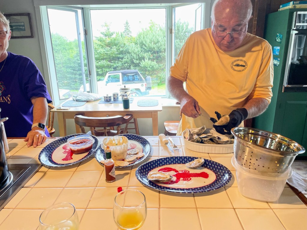 After an activity filled 4th of July, we opted for a low key 5th. Rain was forecast but nothing really materialized until the evening. I once again took advantage of the morning with fantastic bike ride. This time, I stopped at The Bakery in Winter Harbor for a blueberry donut. Then explored a couple new peninsulas while on the hunt for lighthouses. I wasn’t super successful as the first one I couldn’t see from the shore and the other one was dilapidated and inaccessible. In the afternoon, Laura and I gathered provisions for dinner and that evening we cooked scallops, fresh corn, and salad for the folks. The day culminated with fine game of canasta.