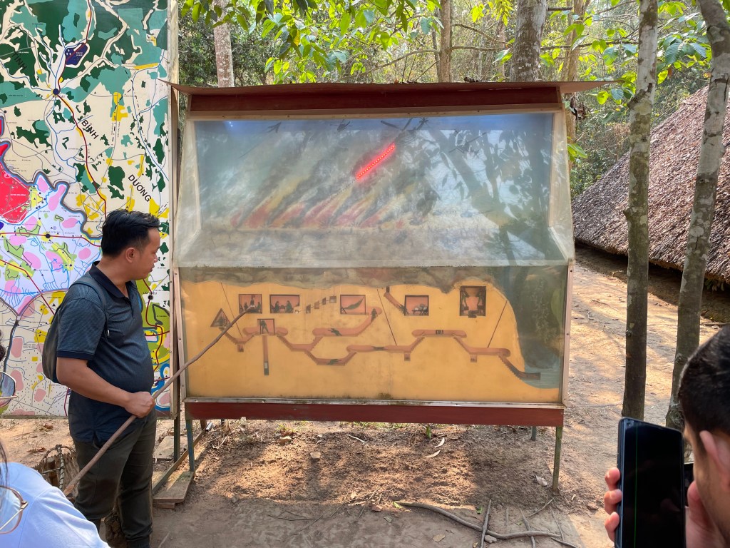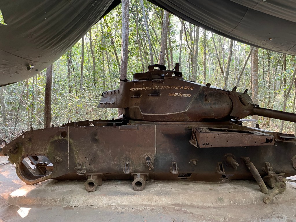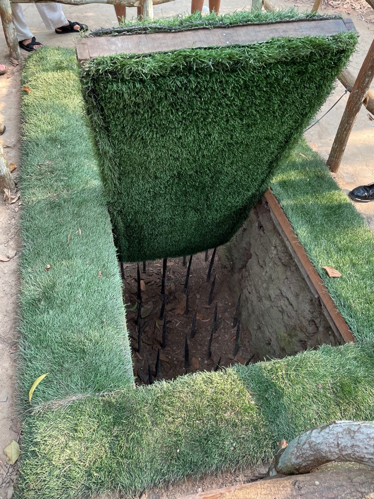 The Cu Chi tunnels outside of Saigon were the last attraction we toured in Vietnam. It’s a very popular destination and makes up just a small sample of the underground network the Vietnam guerrillas used to get an upper hand over the US Army. It was a surreal experience for us 2 Americans. A common theme across the exhibits show how Vietnamese ingenuity over powered superior American technology. One such example included an array of pit traps that were invented up to kill and maim soldiers.