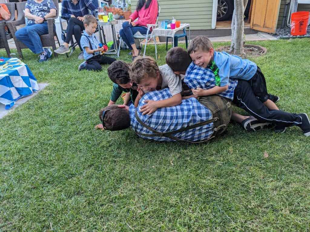 Lucy’s first Gallenbachtoberfest was a hit! And only possible because my Mom was here to take care of her. Lucy maintained a nonplussed expression most of the day with so many people to meet and new things to look at. This year’s attendance was healthy and as expected the kinder count crept a little higher to 10.