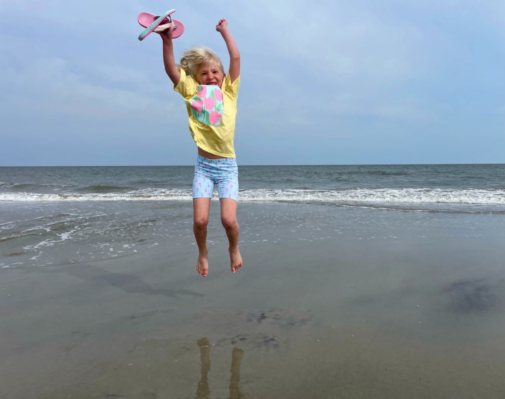Spring break woo! We just returned from a week long trip to the Savannah, GA area and it was fantastic. It was a first of it’s kind trip where my Dad, sister, and I, along with all our respective family units, met on neutral ground for a week of site seeing and hanging out. My Dad got us a great beach house rental on Tybee Island (a sleepy coastal town about 15 miles from Savannah). We were all excited to be staying a mere 100 ft from the beach. Lucky for us, the weather got progressively more beach appropriate as the week went along and by mid-week we were able to introduce Lucy to the Atlantic Ocean. Ironically, Lucy has yet to visit the Pacific Ocean but I’m going to blame that on this year’s wet SoCal winter. Other highlights included visiting the Tybee Island Lighthouse, cooking family dinners, and shopping the junk beach shops. We also made trips to downtown Savannah but I’m going to cover that in another post.