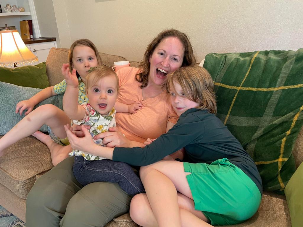 Lucy having fun with Paige, Maggie, and Aaron