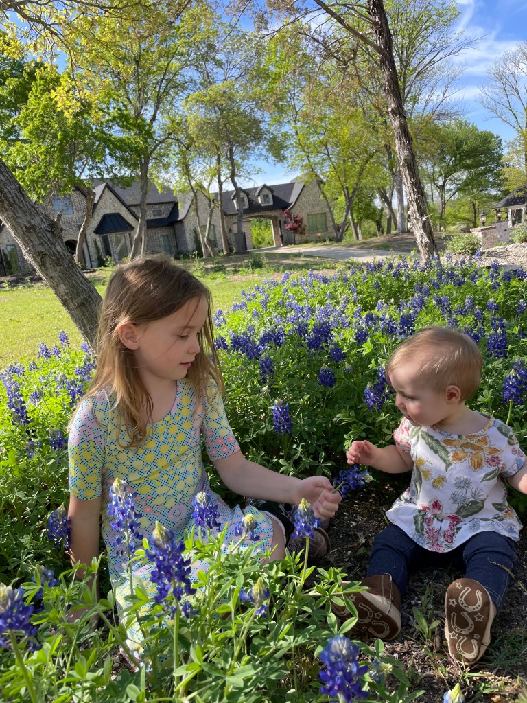 Maggie & Lucy pick bluebonnets