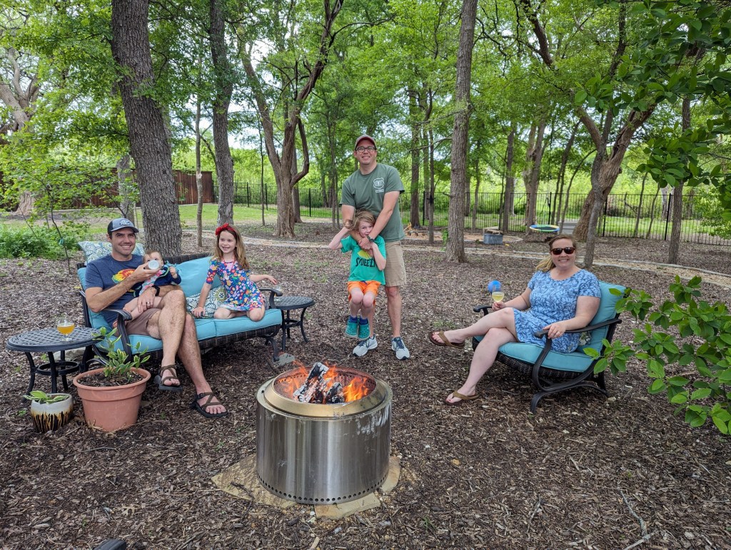 backyard fire pit on Saturday evening
