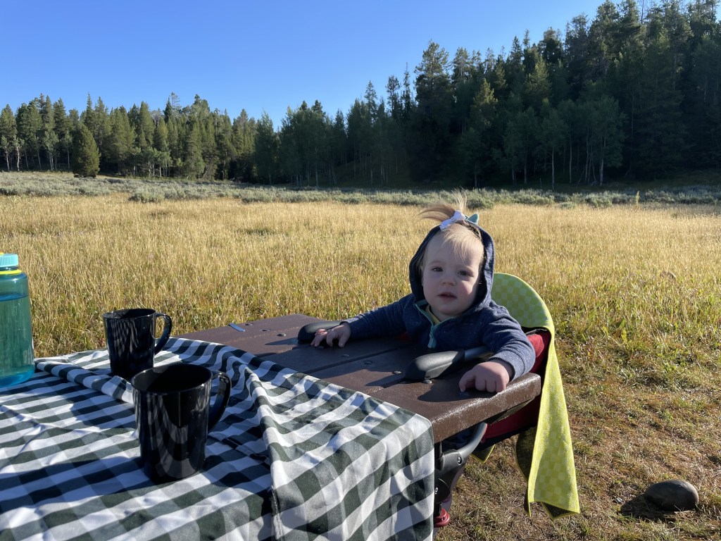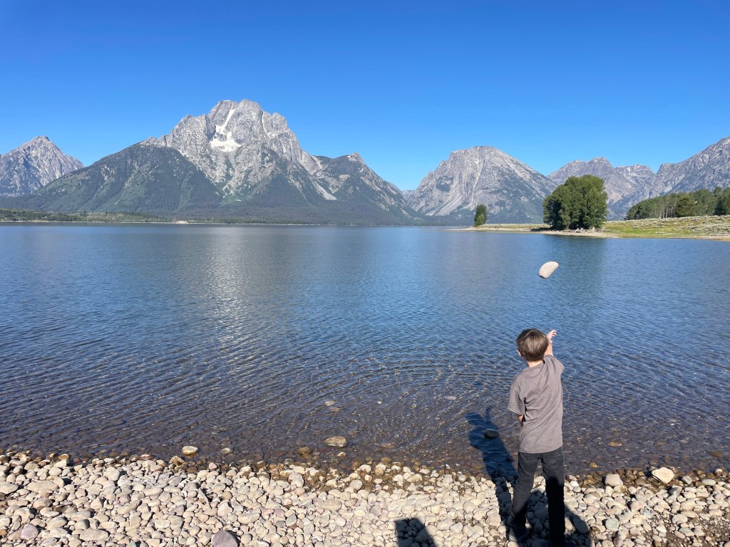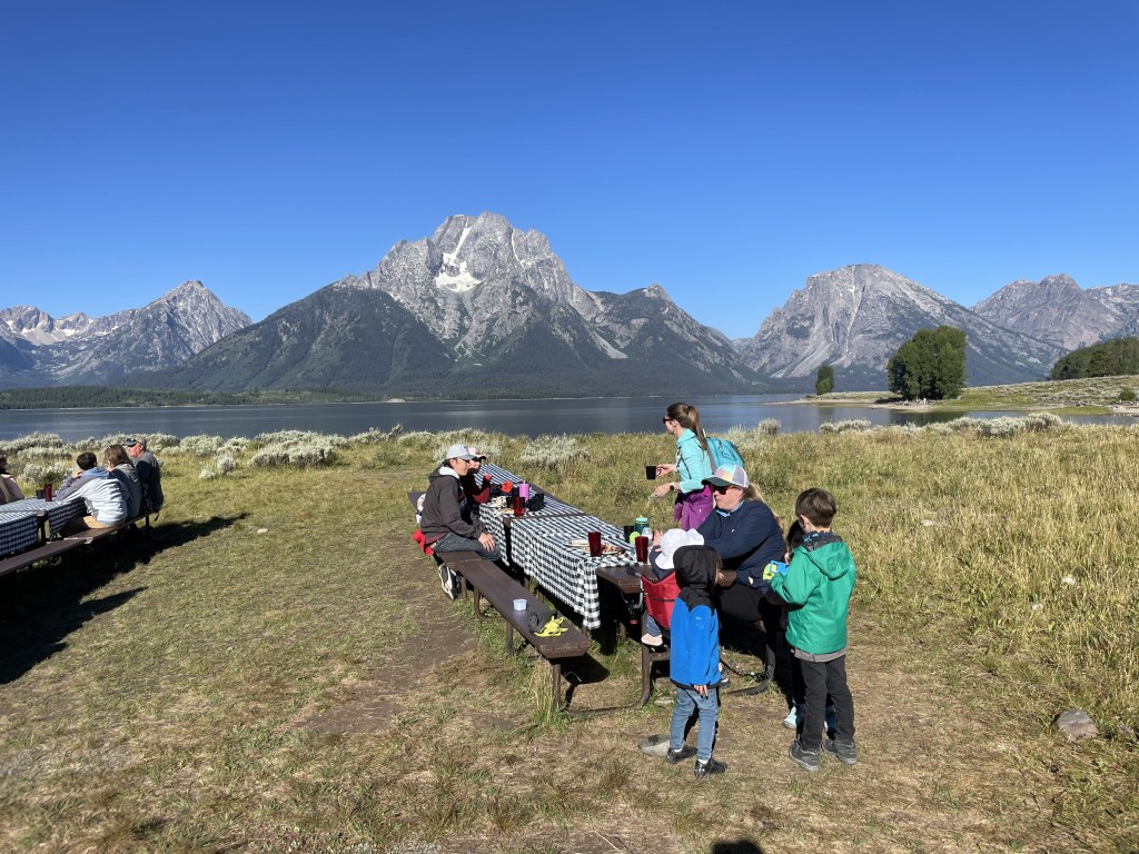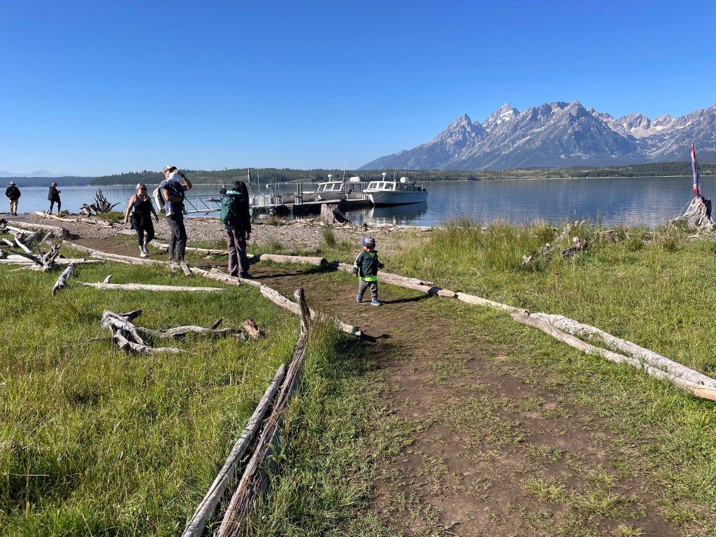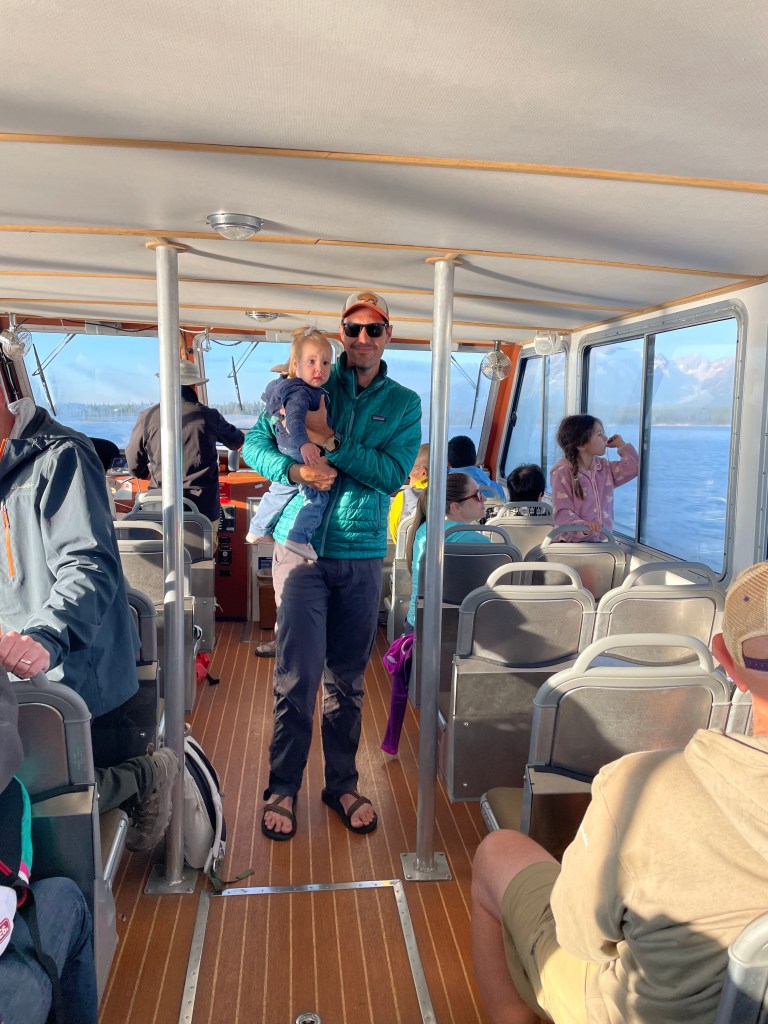 On the morning of our 4th full day in WY, we went on a boat ride! Lilly reserved passage for 5 of the families to Elk Island, located in the middle of Jackson Lake. Not only did this cruise include a tour of the lake but we also were treated to a full breakfast spread on the island. The staff did a really great job and breakfast felt both rustic and classy. I’ve never enjoyed such a tasty breakfast while lakeside gazing at snowcapped mountains. After breakfast there was a little extra time for hiking before we got back on the boat to return to the mainland.