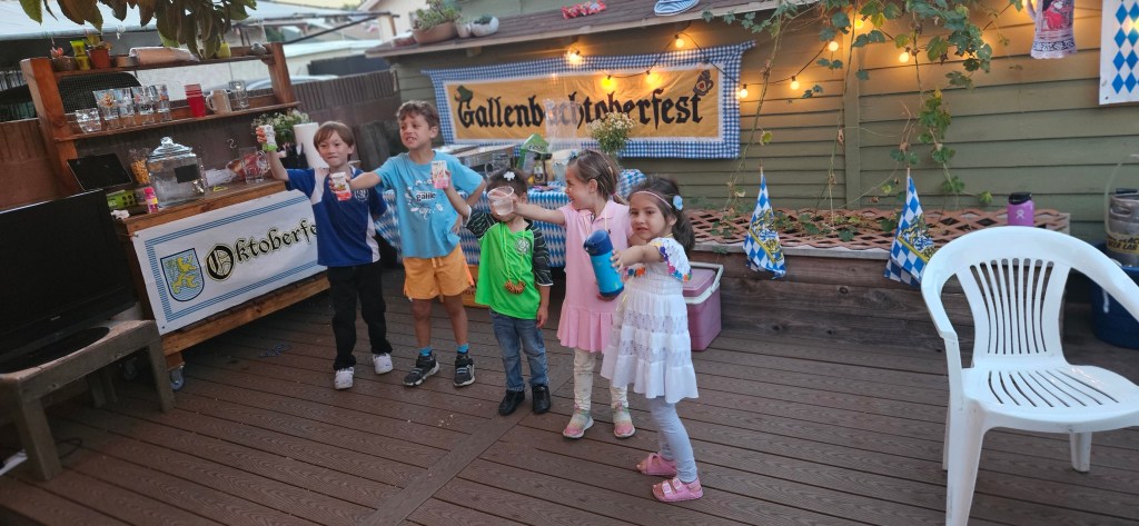 Another year and another successful Gallenbachtoberfest! My Dad joined us for this year’s celebration. Having him there was a great help. He kept an eye out on a very mobile Lucy while Laura and I hosted. The games got a little off track this year so Gallenbachtoberfest Champions were determined solely from stein holding. Rahul took it for the men and Laura was the underdog winner for the women.