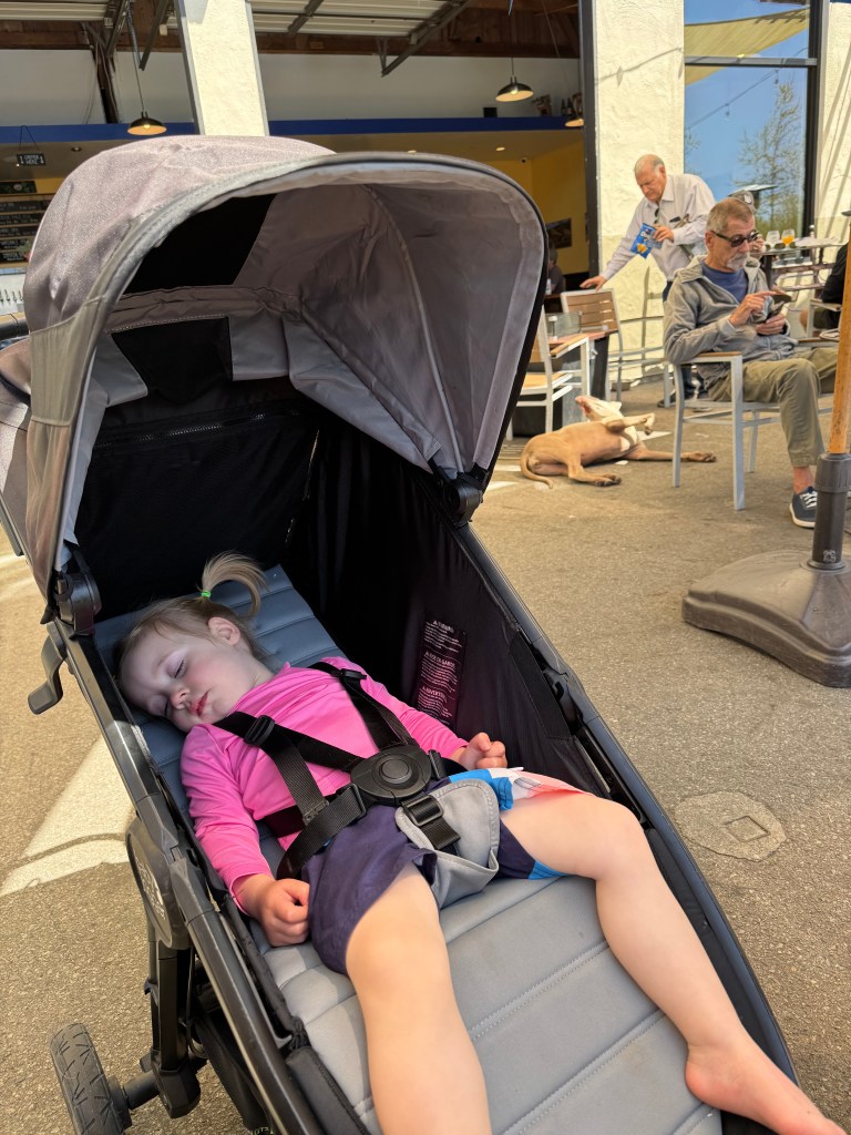 The first winery weekend of the year was a beaut. Lucy looked cute in her spring dress as we picked up our wine shipments on Saturday. We stayed for the first time at the Sideways Inn in Buellton which is a nice short walk to Fig Mt. Brewing. On Sunday, after breakfast, we spent some time at a mostly deserted Carpinteria state beach. Beers at Islands is always a pre-departure requirement.