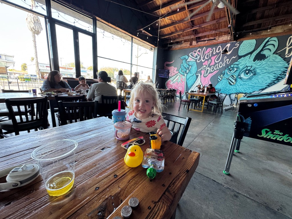 Lucy and I enjoyed car-free street event hosted by the city of Long Beach called “Beach Streets“. It’s very similar to the Los Angeles hosted Ciclavia events. This year’s route ran right by one of my favorite Long Beach breweries, “Long Beach Beer Lab”. Lucy also got to try her very first ice cream cone (strawberry).