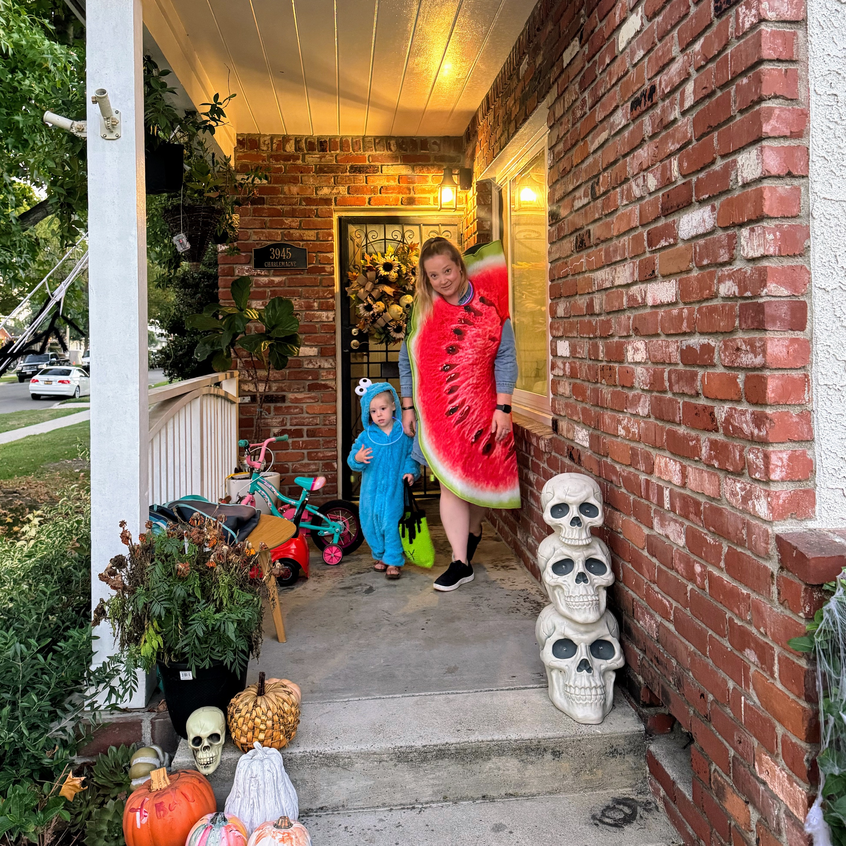 I seized on her love of Sesame Steet to design a Cookie Monster and Gonger family costume. Lucy was Cookie Monster, I was Gonger, and Laura was our missing ingredient, watermelon. We visited about a dozen houses within our new neighborhood to collect sweet treats we didn’t really need. There were plenty of houses to visit but to my surprise, there was not a lot of other trick-or-treater traffic. We only had about 5 visits to our house. I hope that changes as the age demographic in the neighborhood skews younger.